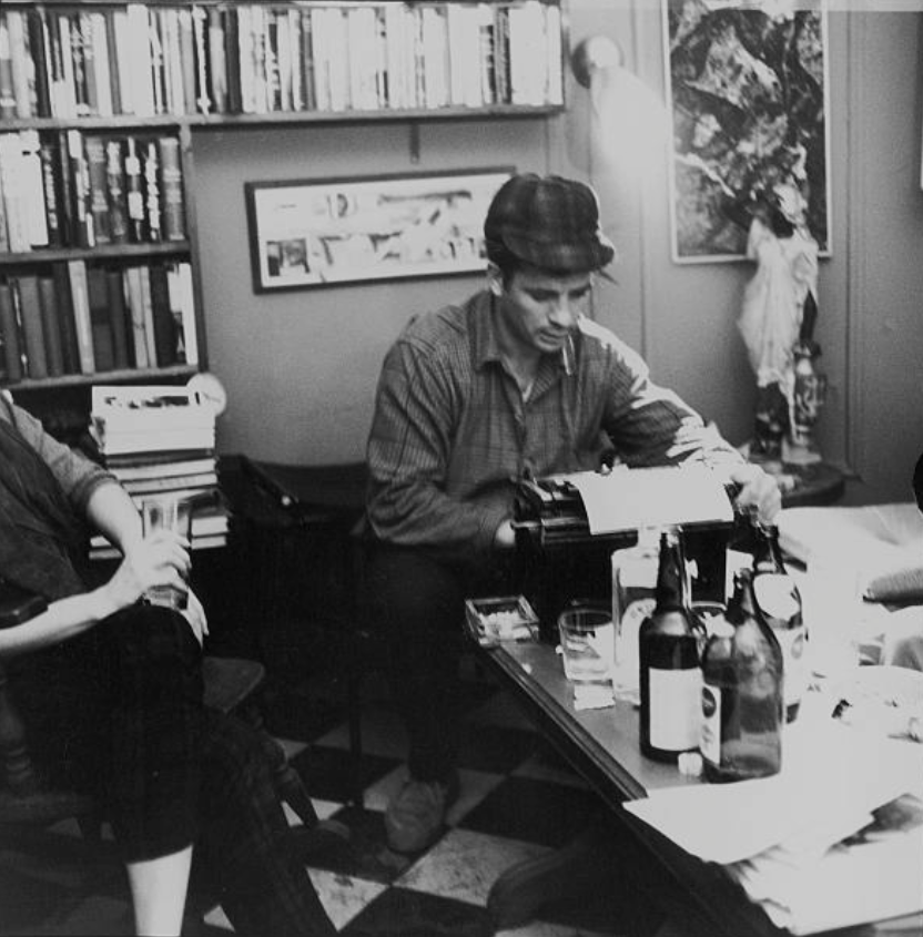 Jack Kerouac typing at the table. He typed out and helped name Naked Lunch by William Burroughs.
